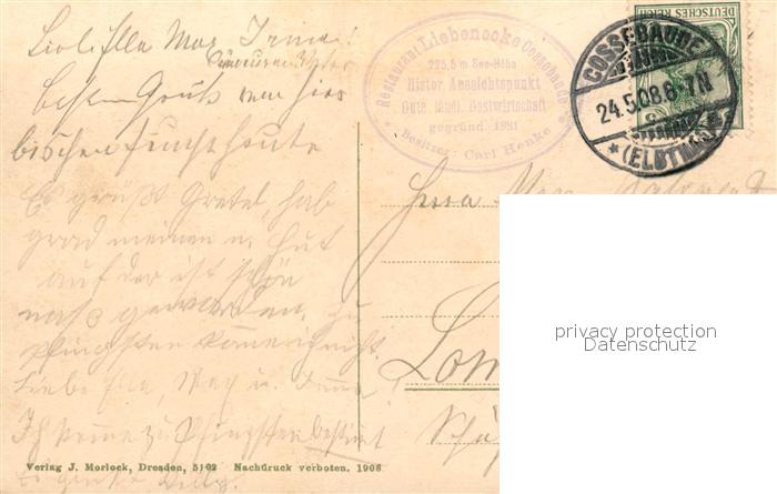 43507017 alte Postkarte Cossebaude Liebenecke Bes. Karl Henke postalisch gelaufen Erhaltung siehe scans [LiesaD40] KatCode: 11110014262000