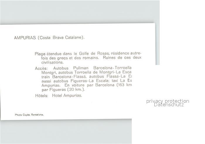 Costa Brava Ampurias Plage, Hotels, Barcelona-Torroella postalisch nicht gelaufen Erhaltung siehe scans