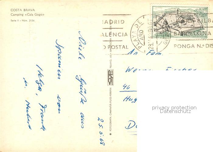 13252916 Costa Brava Camping Cala Gogo postalisch gelaufen Erhaltung siehe scans [NatalD47] old postcard Nata Katcode 11510
