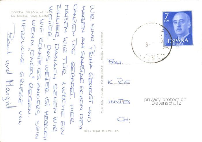 old postcard Costa Brava Escala Cala Montgo postalisch gelaufen