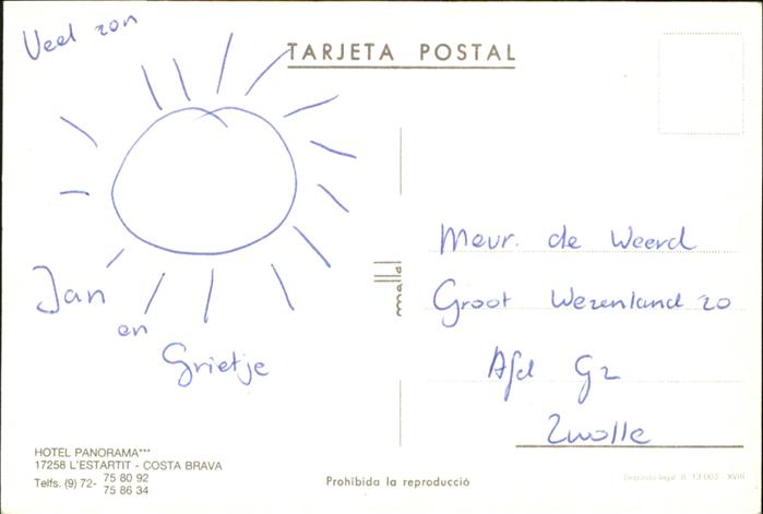Costa Brava Hotel Panorama postalisch nicht gelaufen