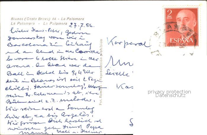 alte Postkarte Costa Brava La Palomera postalisch gelaufen Erhaltung siehe scans
