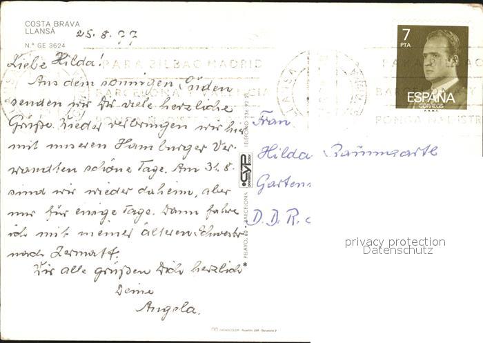 old postcard Costa Brava Llansa postalisch gelaufen Erhaltung siehe scans