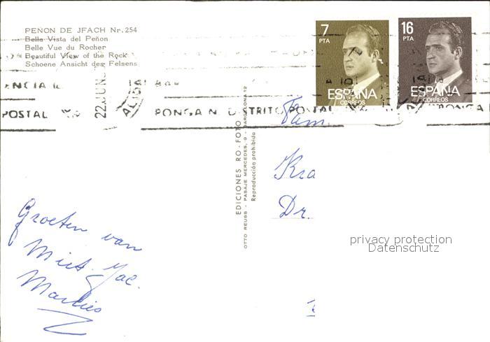 old postcard Costa Brava Penon de Jfach postalisch gelaufen Erhaltung siehe scans