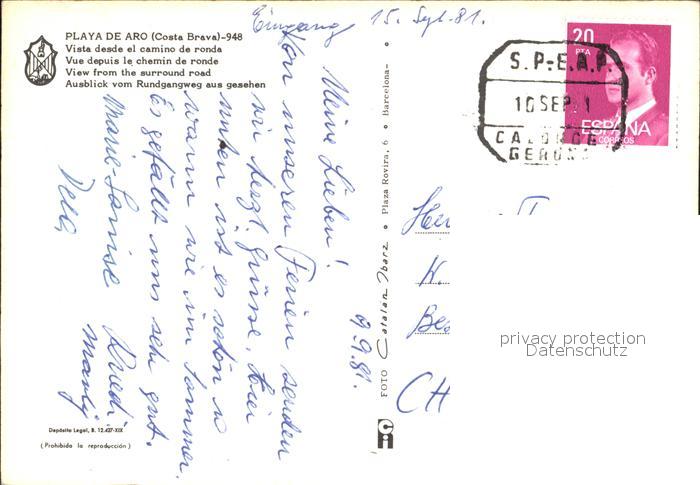 old postcard Costa Brava Playa de Aro Rundweg postalisch gelaufen Erhaltung siehe scans