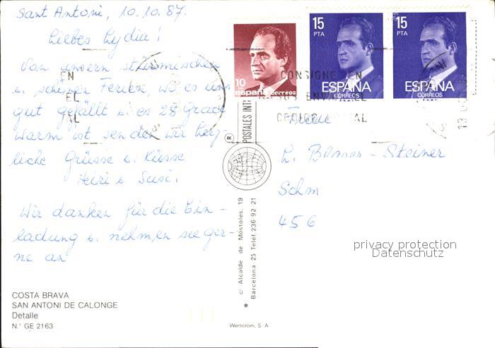 old postcard Costa Brava San Antoni de Calonge postalisch gelaufen Erhaltung siehe scans [NatalD47 kv014box]