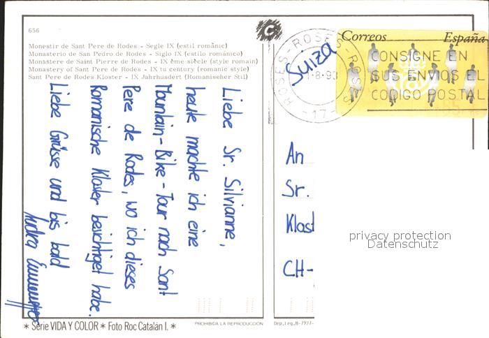 old postcard Costa Brava Sant Pere de Rodes Kloster postalisch gelaufen Erhaltung siehe scans