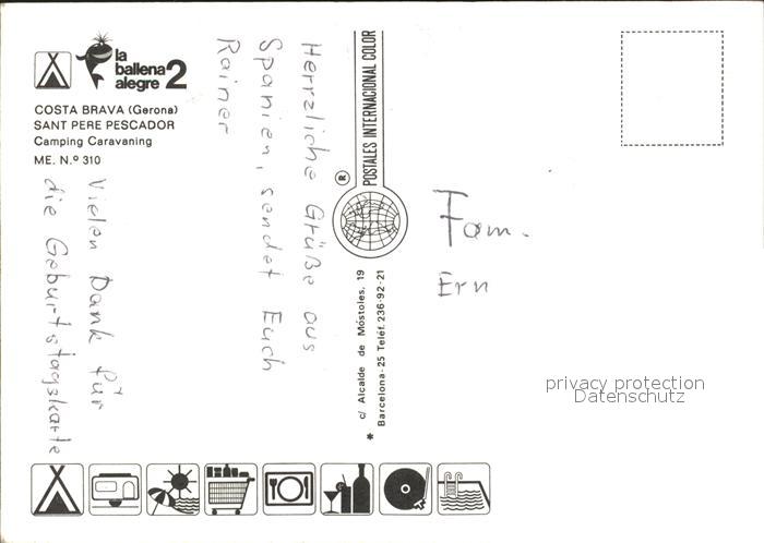 Costa Brava Sant Pere Pescador Camping Caravaning postalisch nicht gelaufen Erhaltung siehe scans