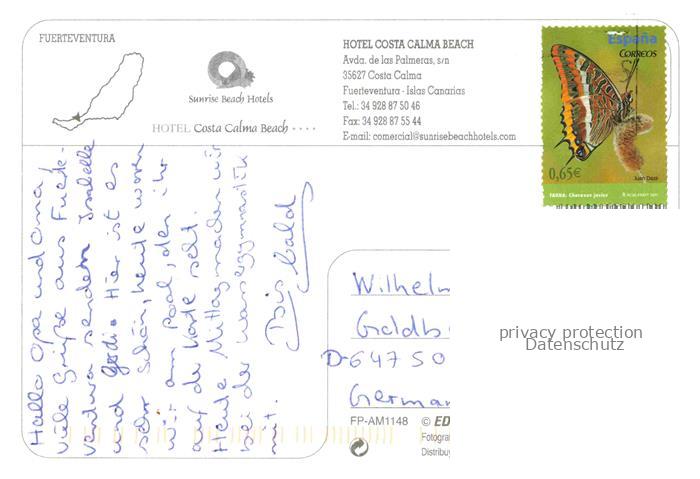 74010893 old postcard Costa Calma Hotel Costa Calma Beach postalisch gelaufen Erhaltung siehe scans [WerneD78] KatCode: 11510
