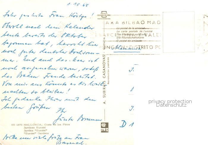 old postcard Costa de los Pinos Jardines Eurotel Piscina postalisch gelaufen Erhaltung siehe scans [FriedD77]