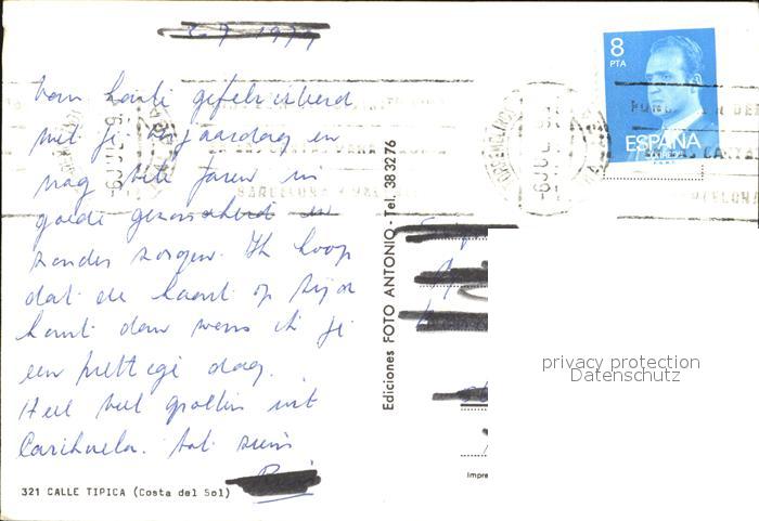 old postcard Costa Del Sol Calle Tipica postalisch gelaufen Erhaltung siehe scans
