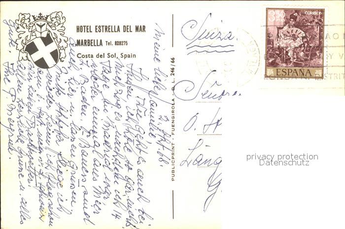 old postcard Costa Del Sol Hotel Estrella del Mar Marbella postalisch gelaufen Erhaltung siehe scans