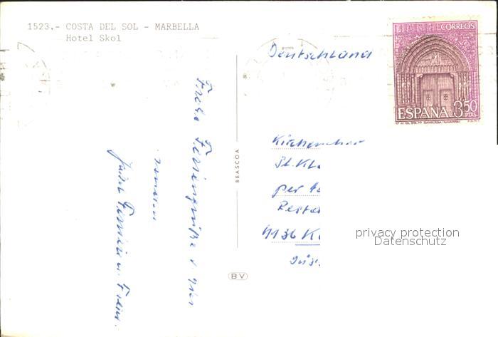 old postcard Costa Del Sol Hotel Skol postalisch gelaufen Erhaltung siehe scans