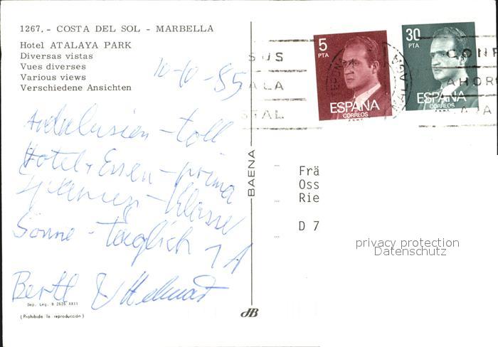 old postcard Costa Del Sol Marbella Hotel Atalaya Park postalisch gelaufen Erhaltung siehe scans [LiesaD40]