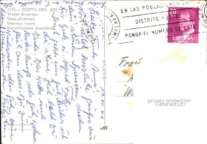 old postcard Costa Del Sol Strnad Ortspartie mit Eseln Tanzgruppe postalisch gelaufen Erhaltung siehe scans [LiesaD40]