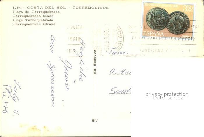 old postcard Costa Del Sol Torremolinos Playa Torrequebrada postalisch gelaufen Erhaltung siehe scans