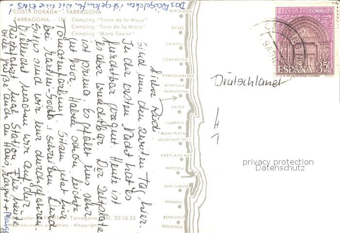 old postcard Costa Dorada Camping Torre de la Mora postalisch gelaufen Erhaltung siehe scans