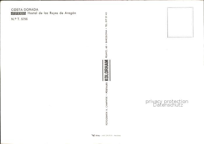 Costa Dorada Fliegeraufnahme Hostol de los Reyes de Aragon postalisch nicht gelaufen Erhaltung siehe scans
