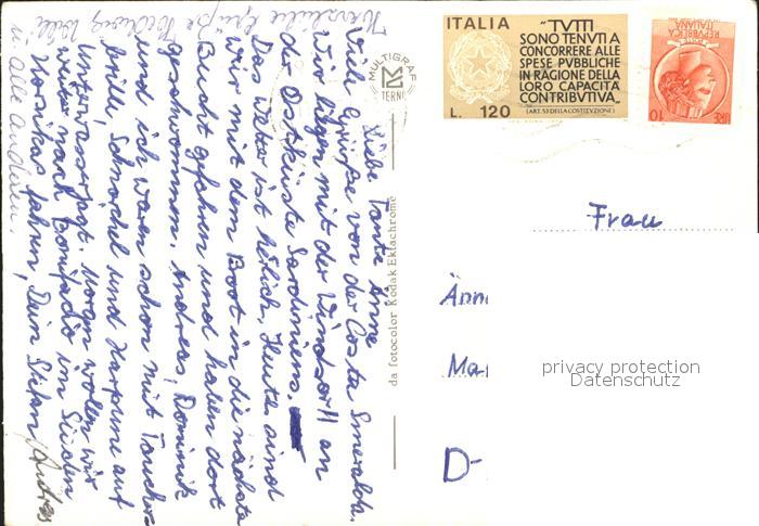 old postcard Costa Smeralda Hafen Segelschiff Bucht Abendsonne postalisch gelaufen Erhaltung siehe scans