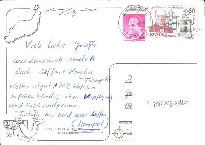old postcard Costa Teguise Strand Palmen postalisch gelaufen Erhaltung siehe scans