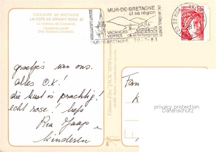 12688779 carte postale Costaeres 22 Chateau de Costaeres vue aerienne postalisch gelaufen Erhaltung siehe scans [FriedD77] KatCode: 11170022322168