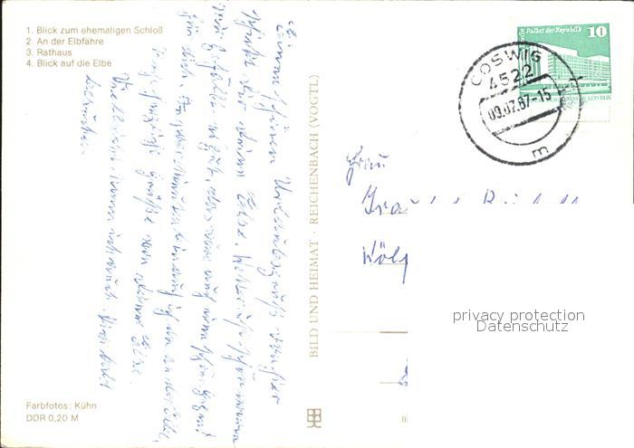 72406736 alte Postkarte Coswig Anhalt Schloss Elbfaehre Anleger Rathaus Elbe postalisch gelaufen Erhaltung siehe scans KatCode: 11110015091060
