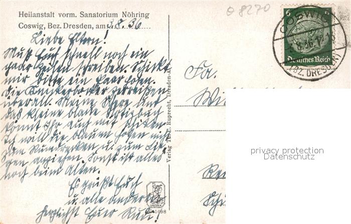 43349560 alte Postkarte Coswig Sachsen Heilanstalt vormals Sanatorium Noehring postalisch gelaufen Erhaltung siehe scans [FriedD77] KatCode: 11110014280040