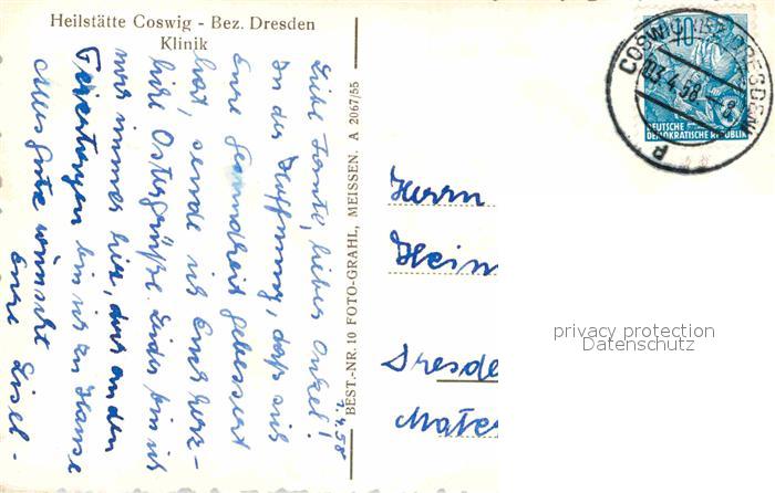 72642777 alte Postkarte Coswig Sachsen Klinik postalisch gelaufen Erhaltung siehe scans [AndreD76] KatCode: 11110014280040