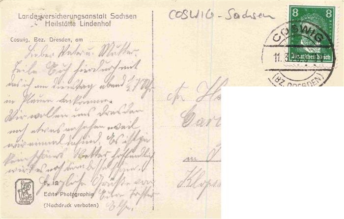 73973624 alte Postkarte Coswig Sachsen LVA Sachsen Heilstaette Lindenhof Fliegeraufnahme postalisch gelaufen Erhaltung siehe scans [WerneD78] KatCode: 11110014280040