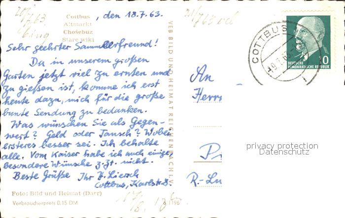 72400494 alte Postkarte Cottbus Altmarkt postalisch gelaufen Erhaltung siehe scans KatCode: 11110012052000