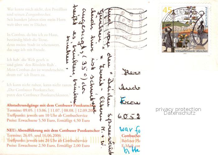 73071234 alte Postkarte Cottbus Altstadtrundgaenge mit dem Cottbuser Postkutscher postalisch gelaufen Erhaltung siehe scans [FriedD77] KatCode: 11110012052000