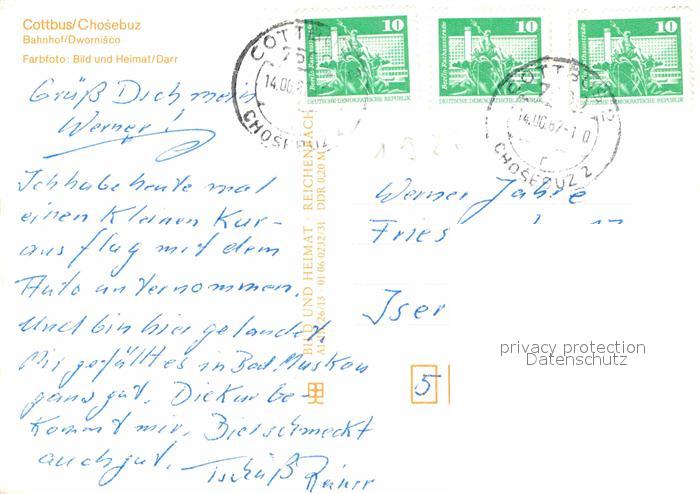 72861990 alte Postkarte Cottbus Bahnhof postalisch gelaufen Erhaltung siehe scans [WerneD78] KatCode: 11110012052000