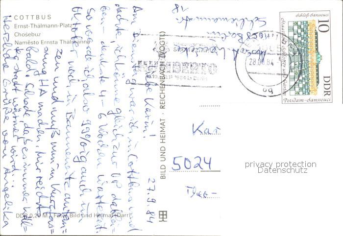 72120584 alte Postkarte Cottbus Ersnt Thaelmann Platz postalisch gelaufen Erhaltung siehe scans KatCode: 11110012052000