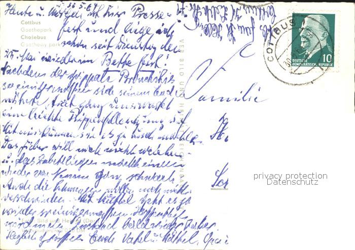 72401338 alte Postkarte Cottbus Goethepark postalisch gelaufen Erhaltung siehe scans KatCode: 11110012052000