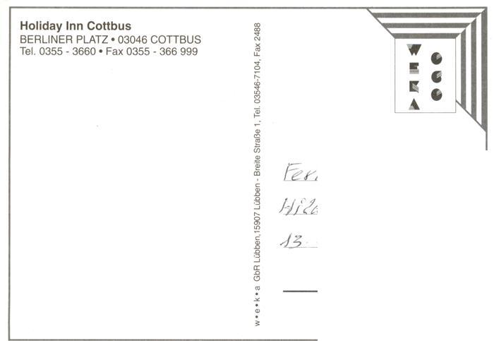 73880501 Cottbus Holiday Inn postalisch nicht gelaufen Erhaltung siehe scans [WerneD78] KatCode: 11110012052000