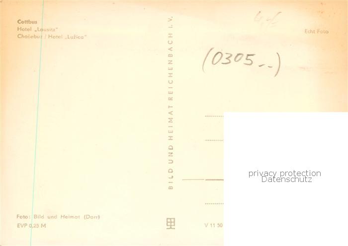 73870095 Cottbus Hotel Lausitz postalisch nicht gelaufen Erhaltung siehe scans [WerneD78] KatCode: 11110012052000