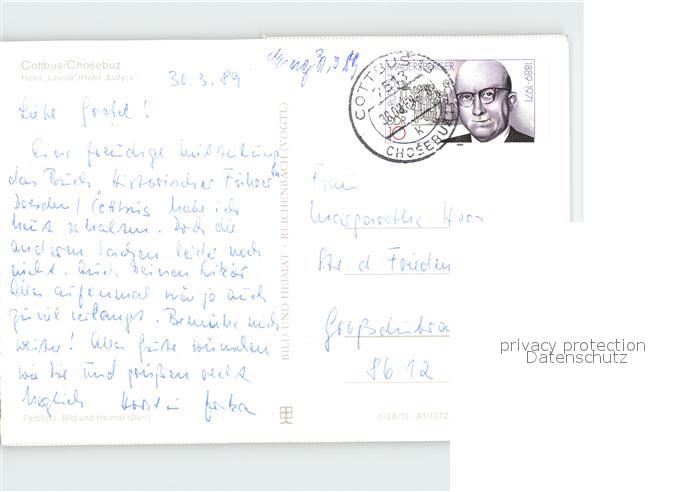 72199533 alte Postkarte Cottbus Hotel Lausitz postalisch gelaufen Erhaltung siehe scans KatCode: 11110012052000