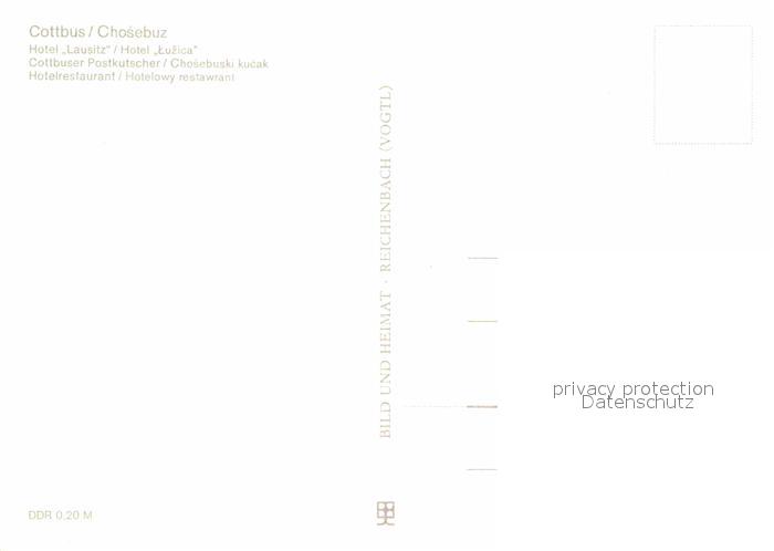 72841812 Cottbus Hotel Lausitz Cottbuser Postkutscher Hotelrestaurant postalisch nicht gelaufen Erhaltung siehe scans [WerneD78] KatCode: 11110012052000