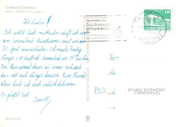 73873844 alte Postkarte Cottbus Hotel Lausitz postalisch gelaufen Erhaltung siehe scans [WerneD78] KatCode: 11110012052000