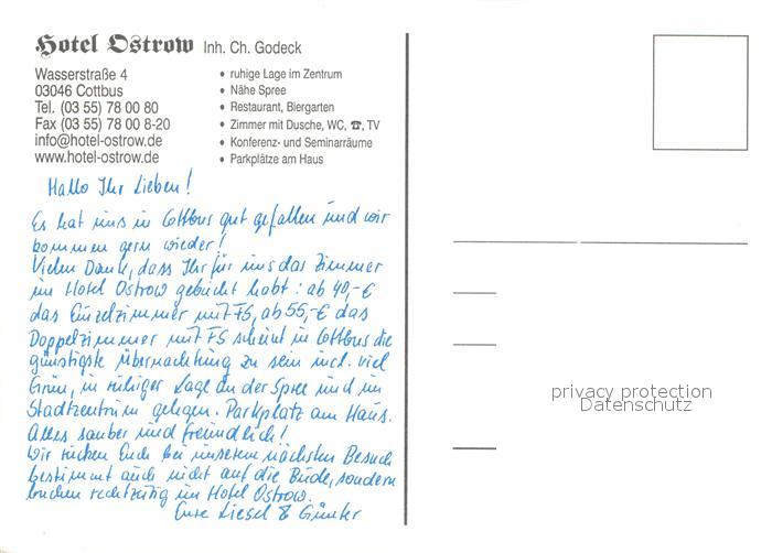 73642424 Cottbus Hotel Ostrow Bar Innenstadt Strassenbahn Stadtplan postalisch nicht gelaufen Erhaltung siehe scans [FriedD77] KatCode: 11110012052000