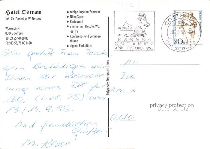 72529312 alte Postkarte Cottbus Hotel Ostrow Spreewald postalisch gelaufen Erhaltung siehe scans KatCode: 11110012052000