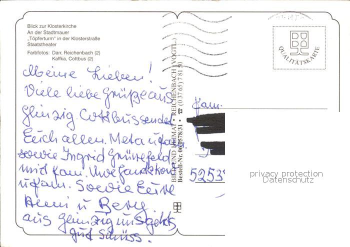 72449269 alte Postkarte Cottbus Klosterkirche An der Stadtmauer Toepferturm Staatstheater postalisch gelaufen Erhaltung siehe scans KatCode: 11110012052000