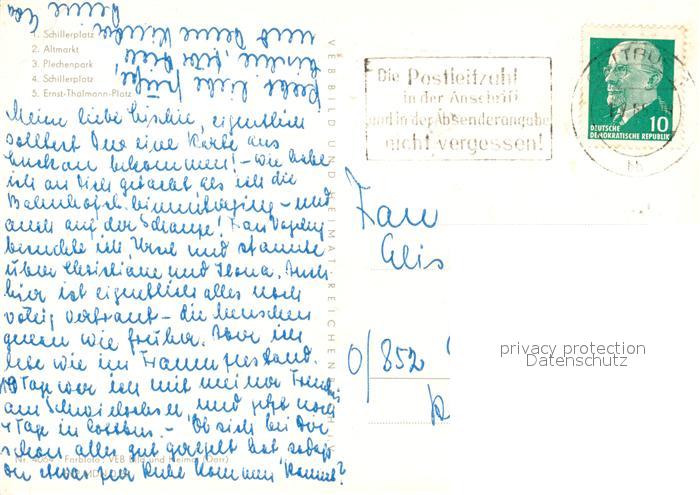 73248954 alte Postkarte Cottbus Schillerplatz Altmarkt Plechenpark Schillerplatz Ernst Thaelmann Platz postalisch gelaufen Erhaltung siehe scans [FriedD77] KatCode: 11110012052000