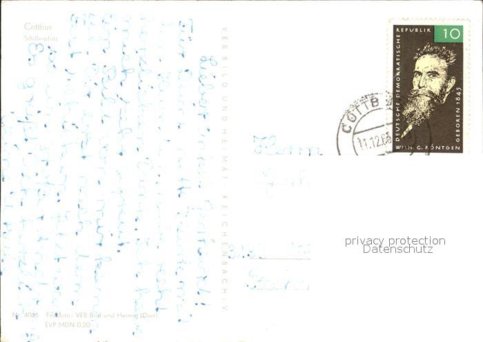 72222703 alte Postkarte Cottbus Schillerplatz Fontaene postalisch gelaufen Erhaltung siehe scans KatCode: 11110012052000
