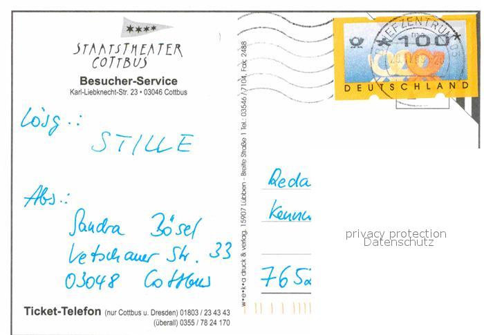 72780714 alte Postkarte Cottbus Staatstheater postalisch gelaufen Erhaltung siehe scans [FriedD77] KatCode: 11110012052000