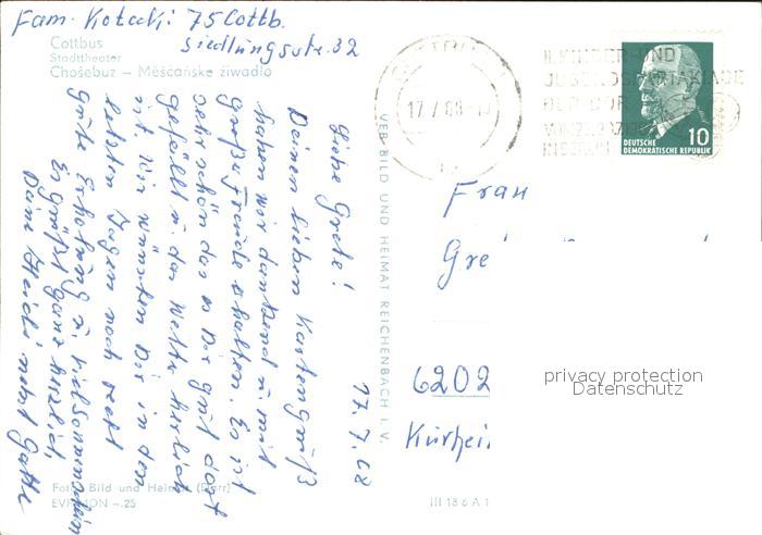 72083965 alte Postkarte Cottbus Stadttheater postalisch gelaufen Erhaltung siehe scans KatCode: 11110012052000