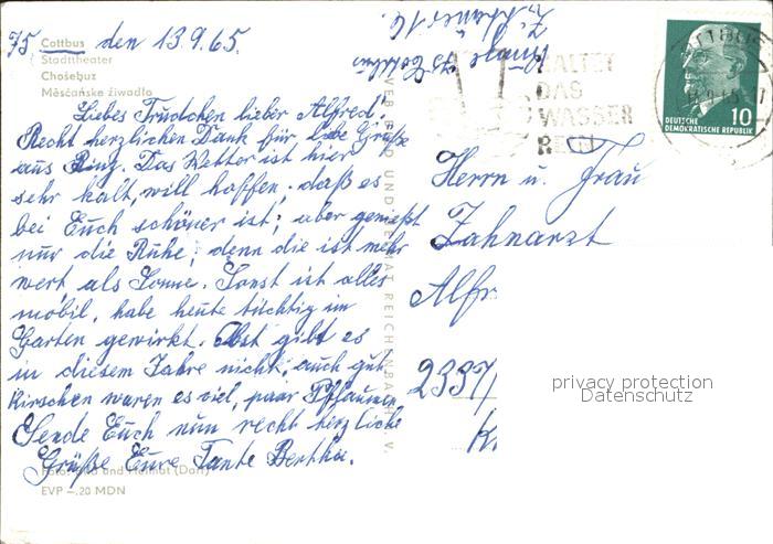 72042955 alte Postkarte Cottbus Stadttheater postalisch gelaufen Erhaltung siehe scans KatCode: 11110012052000