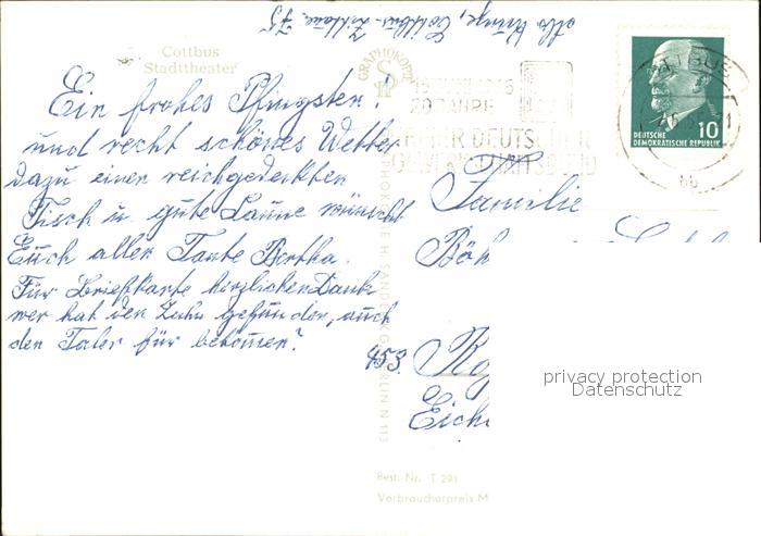 72114549 alte Postkarte Cottbus Stadttheater Wasserspiele postalisch gelaufen Erhaltung siehe scans KatCode: 11110012052000