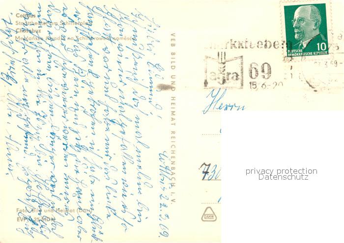 73092954 alte Postkarte Cottbus Stadttheter Schillerplatz postalisch gelaufen Erhaltung siehe scans [NatalD47] KatCode: 11110012052000