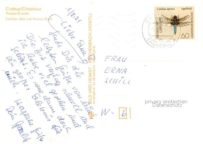 73149503 alte Postkarte Cottbus Theater postalisch gelaufen Erhaltung siehe scans [FriedD77] KatCode: 11110012052000